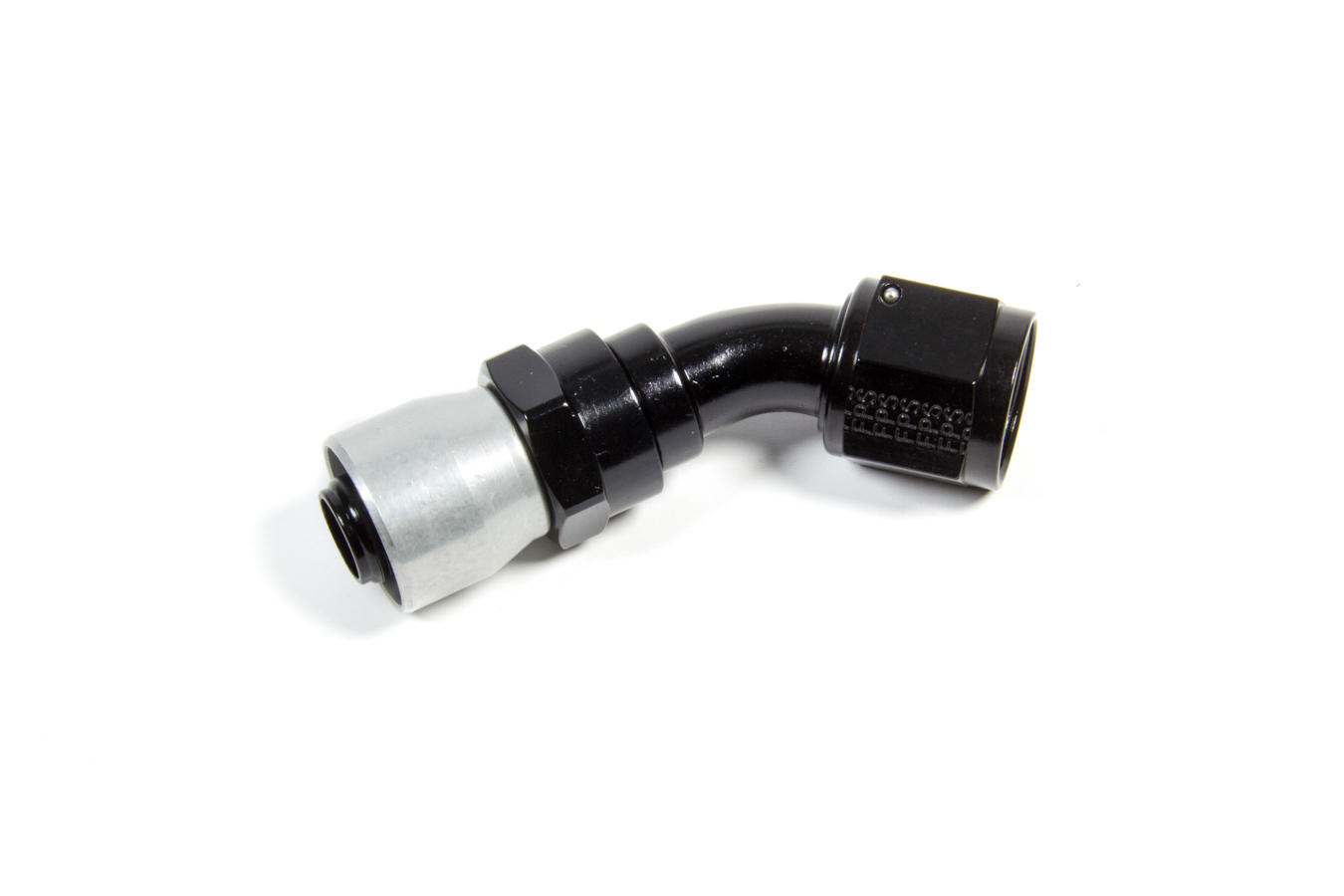 Fitting – Hose End – Sport-Crimp – 45 Degree – 10 AN Hose to 10 AN Female – Aluminum – Black Anodized – Each