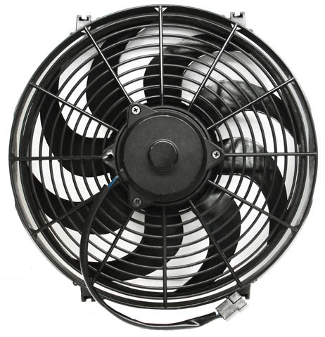 Electric Cooling Fan – High Performance – 14 in Fan – Push – 1650 CFM – 12V – Curved Blade – 14.5 x 14.5 – 4 in Thick – Plastic – Each