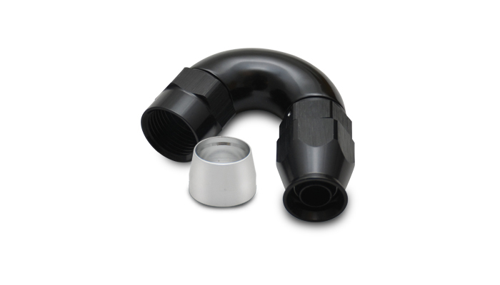VIBRANT PERFORMANCE – 150 Degree High Flow Hose End Fitting -8 VIB28508 Fitting – Hose End – 150 Degree – 8 AN PTFE Hose to 8 AN Female – Aluminum – Black Anodized – Each