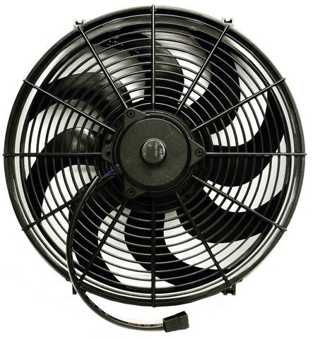 Electric Cooling Fan – High Performance – 16 in Fan – Push – 2100 CFM – 12V – Curved Blade – 16.5 x 16.75 in – 4 in Thick – Plastic – Each