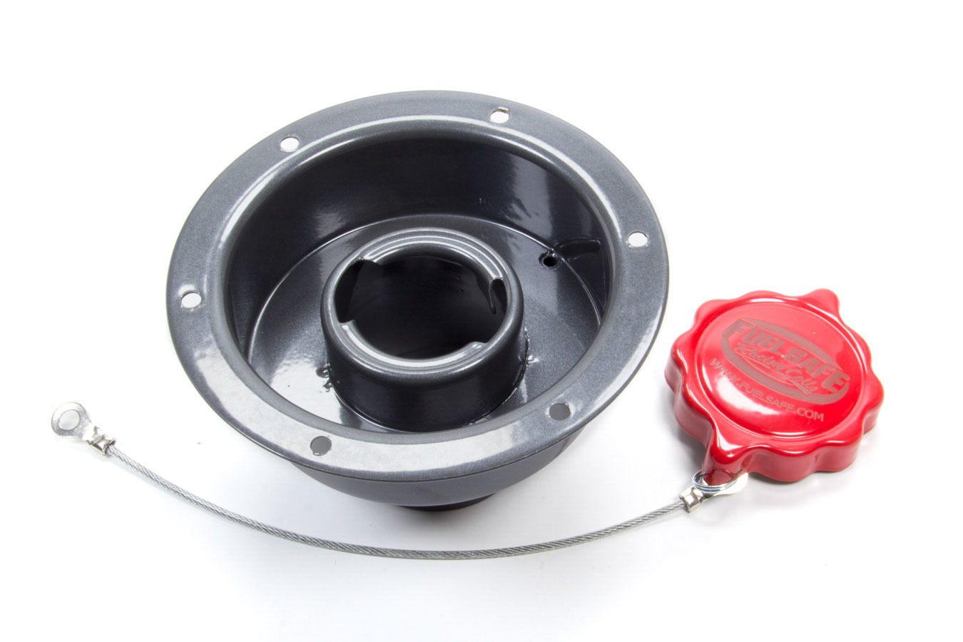 FUEL SAFE – 2.25in Recessed Fender Fill FUERFF225 Fuel Filler Cap Assembly – Fender Fill – Twist-Lock Cap – Flush Remote Mount – 6-Bolt Flange – 2-1/4 in Hose Barb – Steel – Black / Gray Paint – Kit