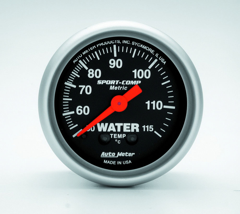 AUTOMETER – 2-5/8 S/C Water Temp Gauge – Metric ATM3332-M Water Temperature Gauge – Sport-Comp – 50-115 Degree C – Mechanical – Analog – Full Sweep – 2-1/16 in Diameter – Black Face – Each