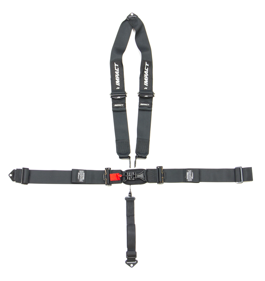 IMPACT RACING – 5-PT Harness System LL V-Type PD IMP53811111 Harness – Racer Series – 5 Point – Latch and Link – SFI 16.1 – Pull Down Adjust – Bolt-In / Wrap Around – V-Type Harness – Black – Kit