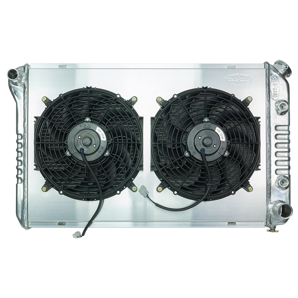 COLD CASE RADIATORS – 84-87 Buick Regal Gr National Radiator AT CCRGMB57AK Radiator and Fan – 32 in W x 18.5 in H x 3 in D – Dual Fans – Driver Side Inlet – Passenger Side Outlet – Aluminum – Polished – Automatic – GM G-Body 1984-87 – Kit