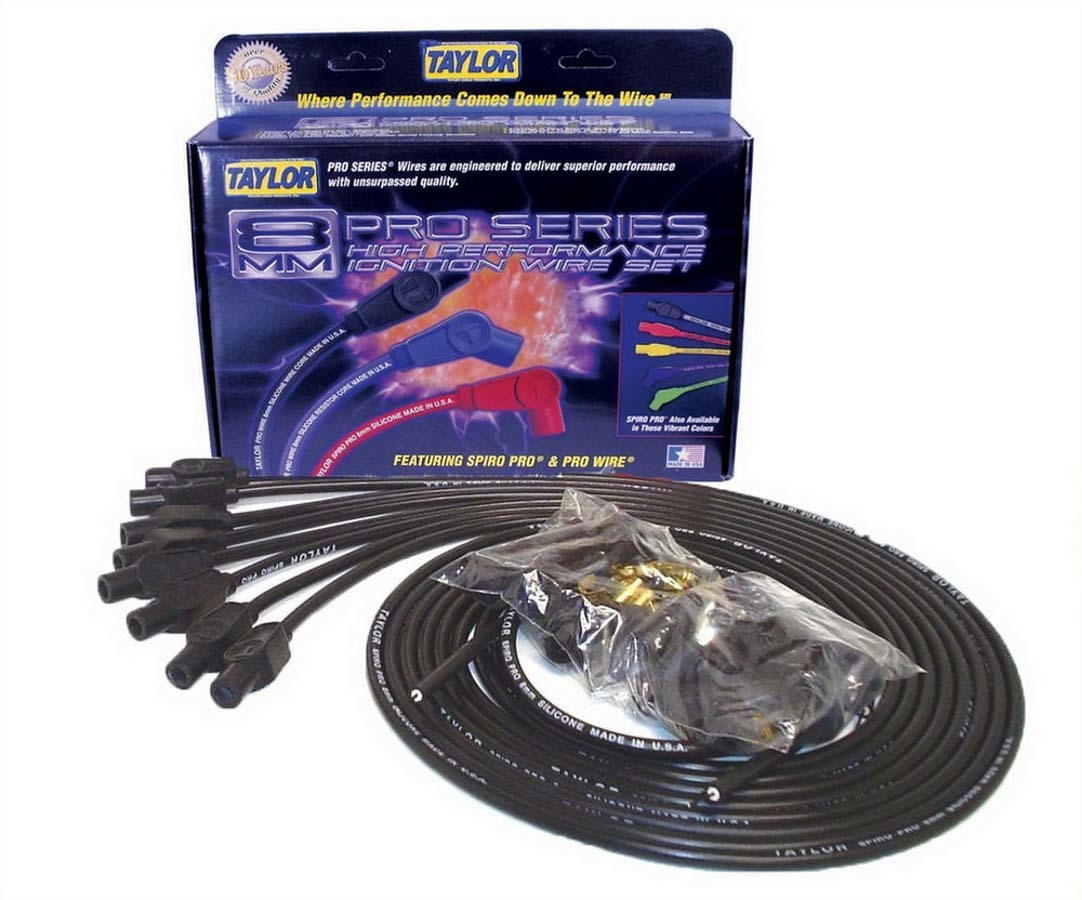 TAYLOR/VERTEX – 8mm Black Spiro-Pro Wire TAY73055 Spark Plug Wire Set – Spiro-Pro – Spiral Core – 8 mm – Black – Straight Plug Boots – HEI / Socket Style – Cut-To-Fit – V8 – Kit