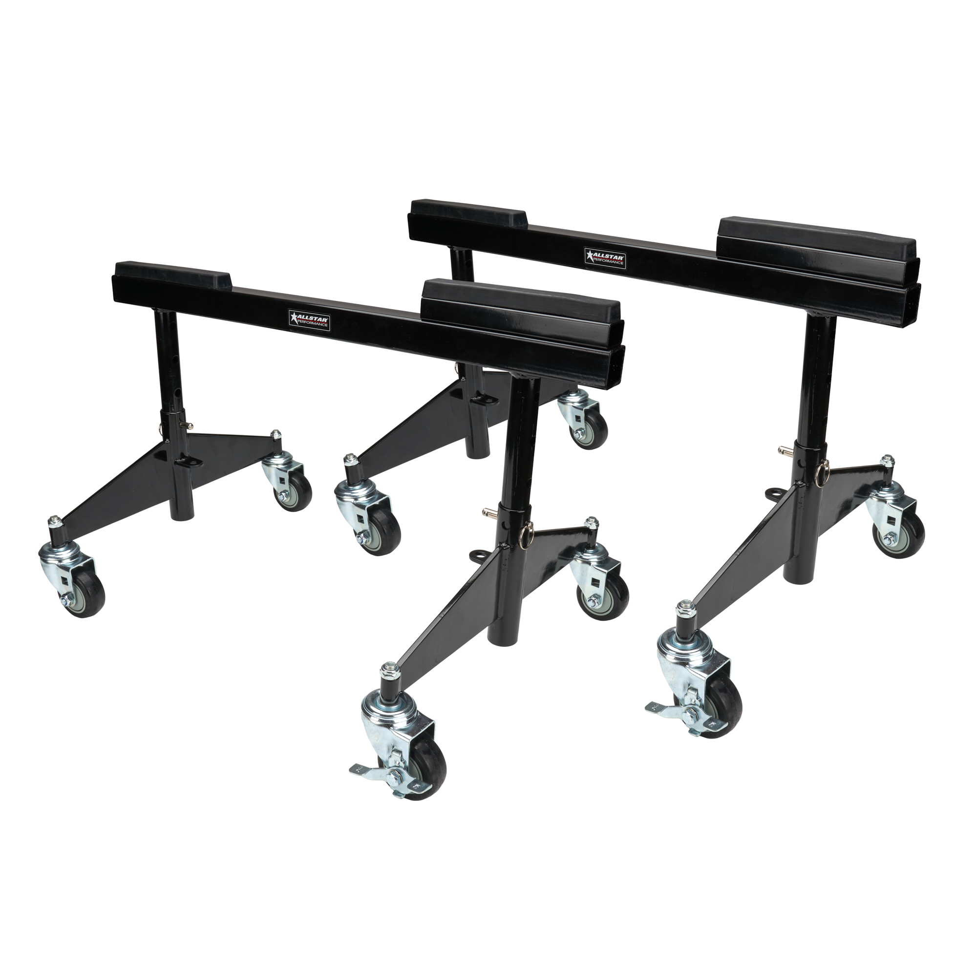 ALLSTAR PERFORMANCE – Chassis Dollies Black ALL10626 Chassis Dollies – 30 in Wide – 13-19 in Height Adjustable – Collapsible – Removable 1 in Block Included – Up to 2000 lbs – Steel – Black Powder Coat – Pair
