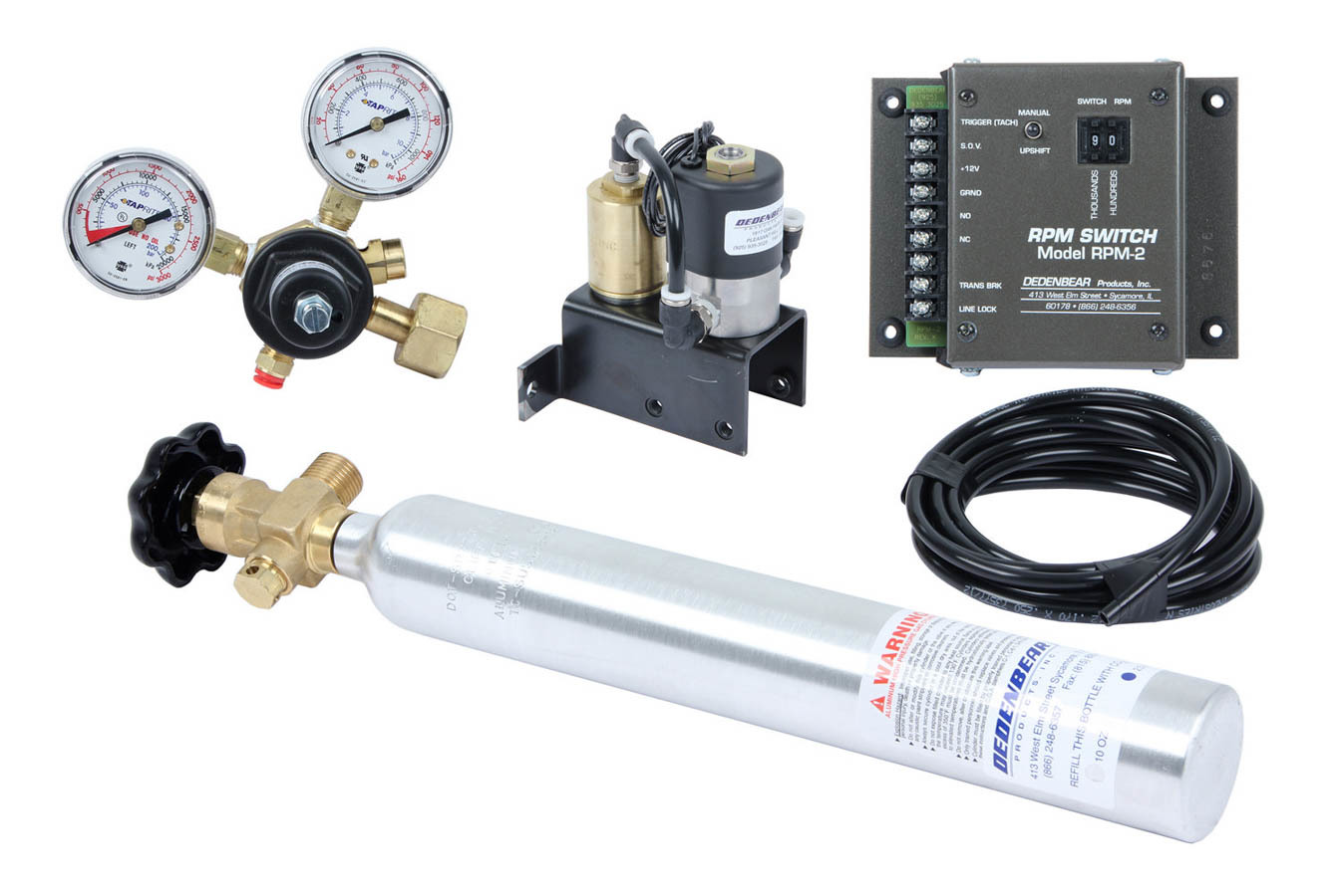 DEDENBEAR – CO2 Shifter Kit DEDAS4K Shifter Ram Kit – Brackets / Bottle / Regulator / RPM Switch / Hardware / Electric Solenoid – Steel – Forward Turbo Action Cheetah – Kit