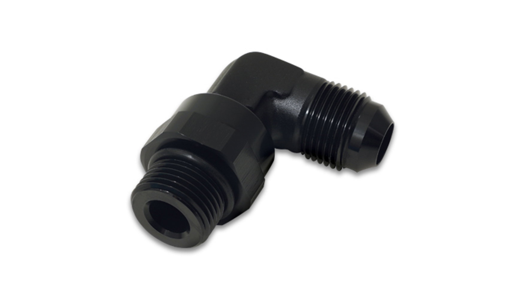 VIBRANT PERFORMANCE – Fitting 90 degree Male -8 AN to Male Straight VIB16965 Fitting – Adapter – 90 Degree – 8 AN Male to 10 AN Male O-Ring Swivel – Aluminum – Black Anodized – Each