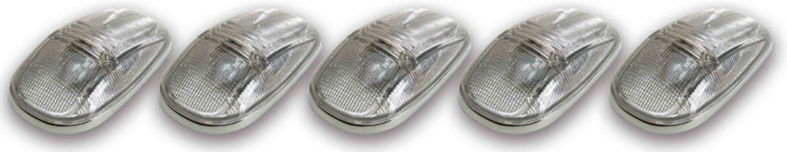 PACER PERFORMANCE – Hi-Five Cab Roof Lights Clear PCP20-245C Clearance Light – Hi-5 – Dodge Style – 5.5 in x 3.125 x 1.375 in – Incandescent – Flat / Curved Mount – Plastic – Clear Lens – Dodge Fullsize Truck 1999-2002 – Kit