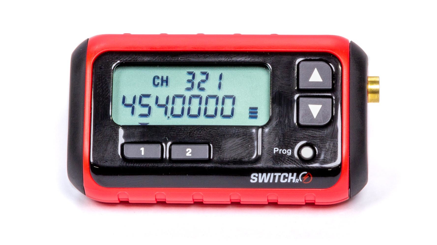 Radio Receiver – SWITCH-R – Dual Channel – LCD Screen – AAA Batteries / Lanyard Included – Plastic – Red – Each