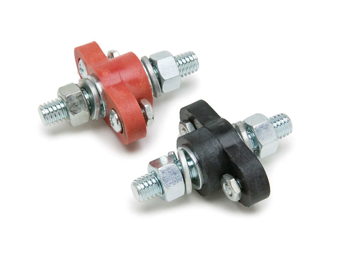 Battery Cable Connector – Bulkhead – 12V – 1 in Diameter Hole – 3/8-16 in Thread – Hardware Included – Black / Red – Kit