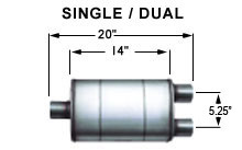 Muffler – XL 3 Chamber – 3 in Center Inlet – Dual 2-1/4 in Outlet – 14 x 9 x 4 in Oval Body – 20 in Long – Stainless – Natural – Universal – Each