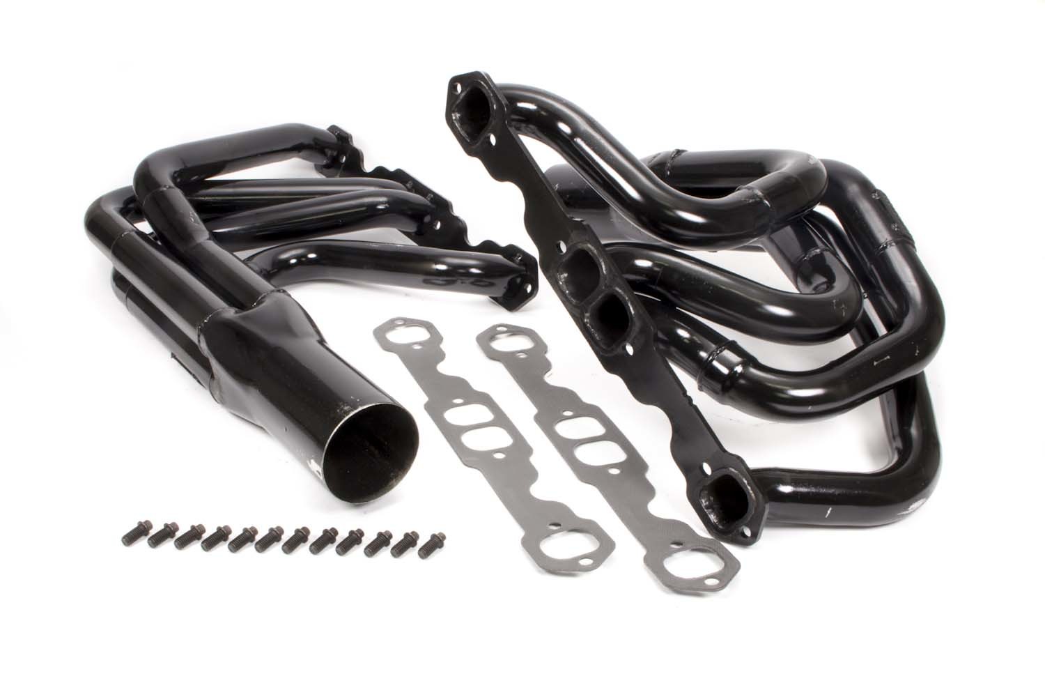 Headers – IMCA Modified – 1-3/4 to 1-7/8 in Primary – 3-1/2 in Collector – Steel – Black Paint – Small Block Chevy – Pair