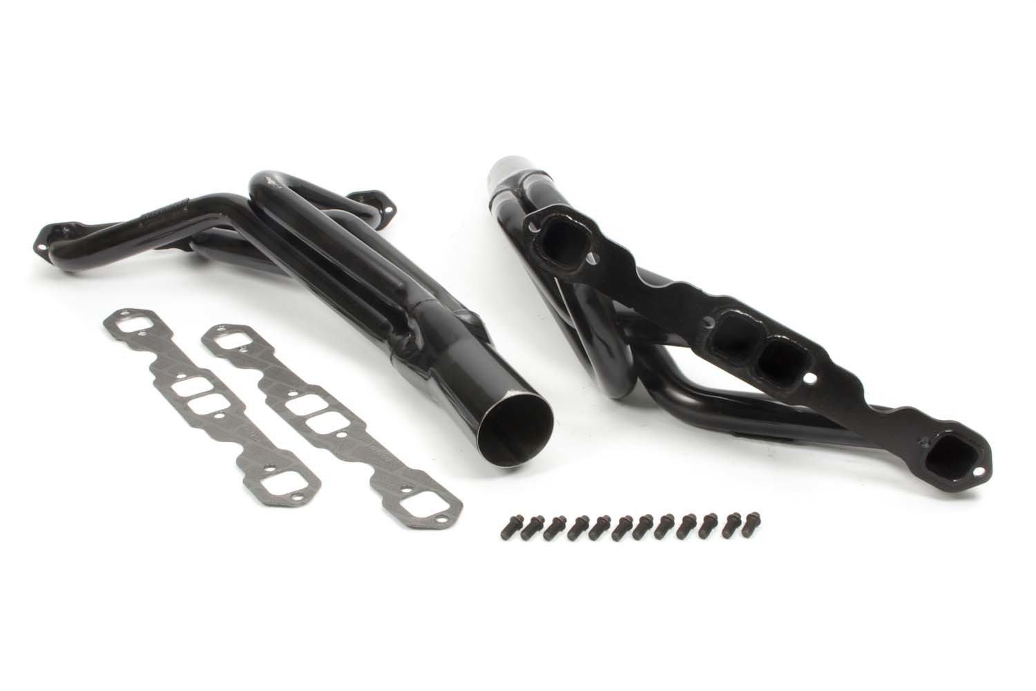 SCHOENFELD – SBC Street Stock Headers 1-3/4 SCH104 Headers – Street Stock – Full – 1.75 in Primary – 3.5 in Collector – Gaskets / Hardware Included – Steel – Black Paint – Stock Clip Camaro 1970-81 – Small Block Chevy – Pair