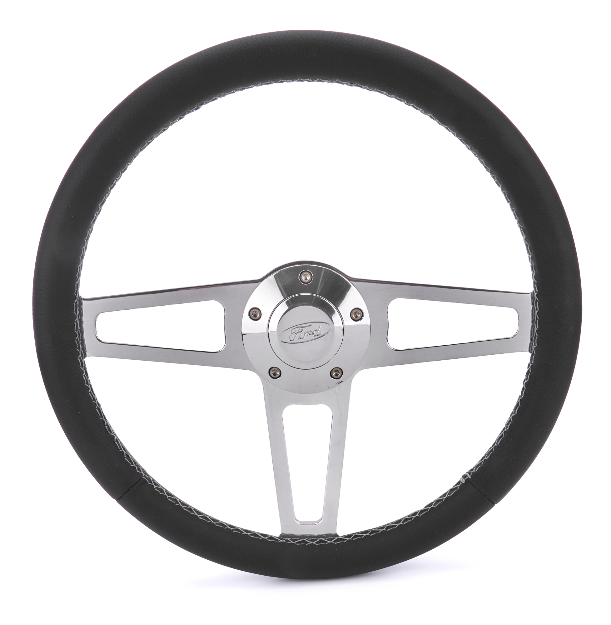 GRANT – T Series Pol. Wheel Ford Logo/Install Kit GRT1913 Steering Wheel – T Series – 13.75 in Diameter – Flat – 3-Spoke – Black Leather Grip – Ford Oval Logo – Aluminum – Polished – Ford 1964-77 – Each