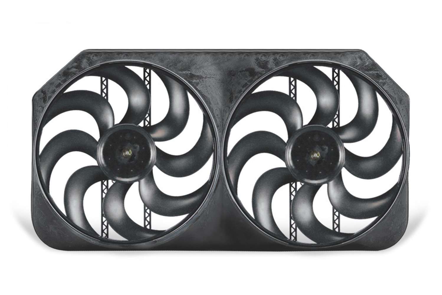 Electric Cooling Fan – Truck Fan – Dual 15 in Fan – Push / Pull – 6000 CFM – 12V – Curved Blade – 31.875 x 17 in – 4.5 in Thick – Controller – Plastic – Kit